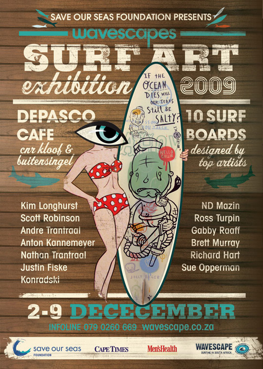 Monday 16 November 2009 The eye woman arrives in the artowrk of the festival for the first time. The girl in the not so itsy bitsy polka dot bikini denotes the new wave of the new era of surfing for everyone and anybody.