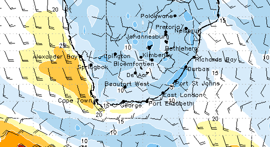 Also, the models appear to have steadily downgraded over the last 24 hours, with average wind of 22 kts easing from the expected 25 kts. Also, bear in mind, the wind is nowhere near the vicious galeforce southeaster expected to smash Cape Town at gusts of 36 kts on Sunday!